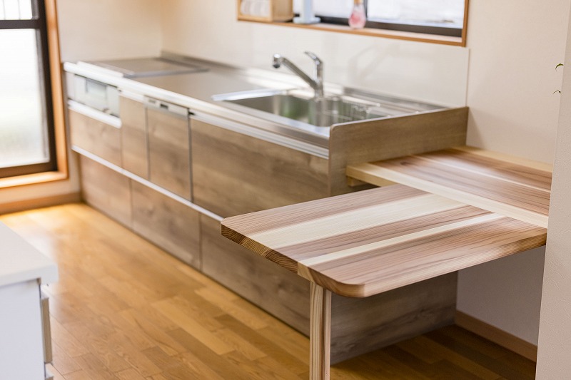 リフォーム実績 【こだわりのポイント】 ご両親と同居することになり、2階をリフォーム! 元、リビングの所と隣の使わなくなった子供部屋を壁をのけて1フロアーに! システムキッチンの横に、家事をする合間にパソコンを使かったり、食事をしたいと!折りたたみのカウンターを作りました。 また、昔ながらのタイル張りのお風呂をシステムバス・洗面所。又、2つ有ったトイレを1つに広くし、壁はシラス壁に! T様邸 外構・エクステリア工事 Y様邸 リフォーム M様邸 リフォーム O様邸 リフォーム